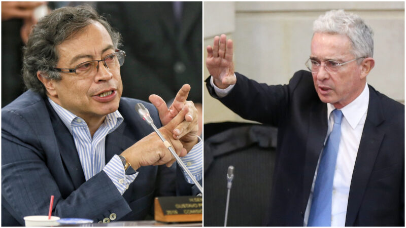 Álvaro Uribe Vélez criticó a Gustavo Petro en sus redes sociales. Fotos: Colprensa.