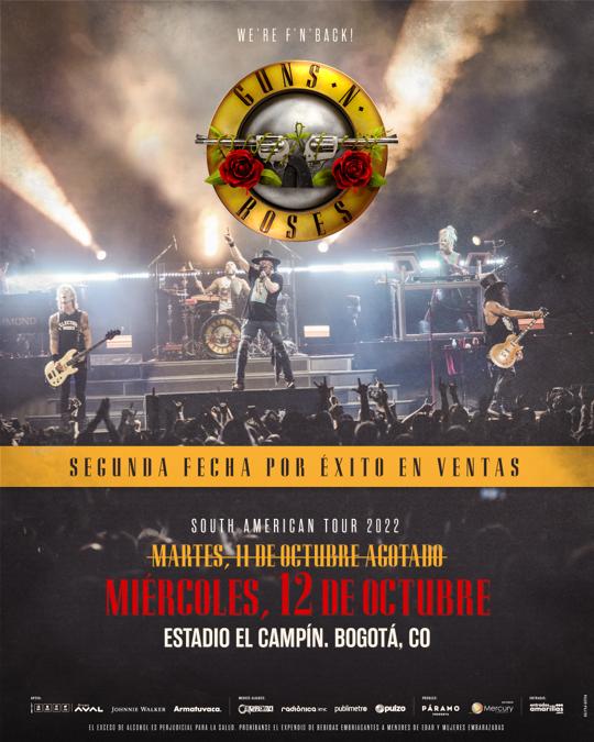 Sergio Pabón indicó que, debido a la masiva respuesta que tuvo la fanaticada de los Guns N’ Roses a la hora de adquirir los boletos para el concierto de 11 de octubre, se habilitó una nueva fecha, el 12 de octubre, para que la banda mundialmente reconocida deleite a los asistentes con sus más grandes éxitos.