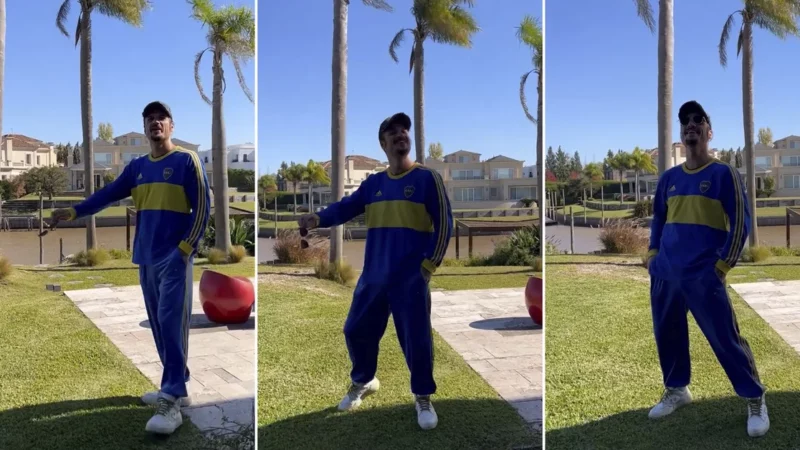El ex jugador del Xeneize, reconocido fanático de esos colores, salió al patio de su casa, bajo el sol, con un look bien ochentoso y una camiseta de manga larga similar a los típicos diseños de la época (salvo el logo de la marca de indumentaria, pero sin publicidad, al igual que el pantalón de jogging) y emuló a Francella: “Buen día. Hermosa mañana, ¿verdad?”