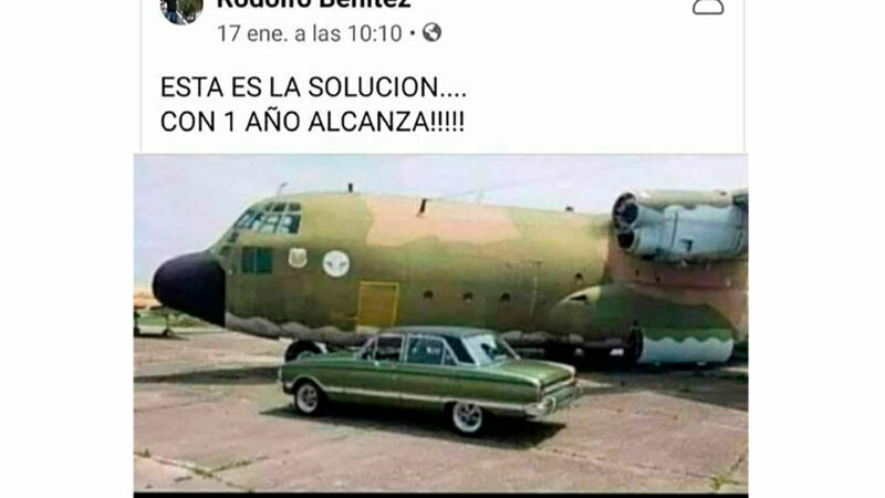 La historia comenzó el 17 de enero del año pasado cuando Luna, de 58 años, compartió en su cuenta de Facebook un mensaje de otro usuario que decía “LA DUPLA PERFECTA; ESTA ES LA SOLUCIÓN. CON UN AÑO ALCANZA” con la imagen de un falcón verde y un avión. El posteo tomó repercusión en Ramallo porque un funcionario hacía una reivindicación de dos símbolos de la desaparición de personas.