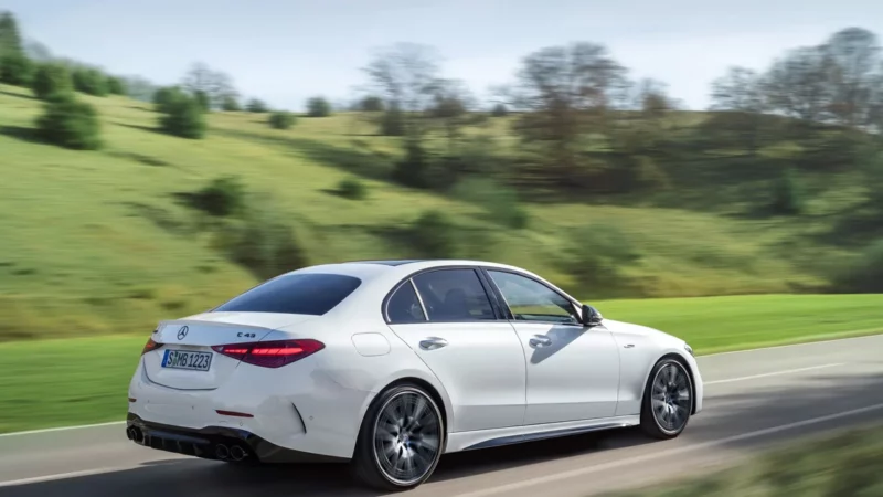 Para el Clase C, el motor está girado 90 grados y mejorado con un turbocompresor de escape eléctrico. Impulsado por el sistema de 48 voltios que también alimenta al híbrido suave, AMG anunció que el turbocompresor está diseñado para alcanzar la velocidad más rápidamente y mejorar así la capacidad de respuesta.