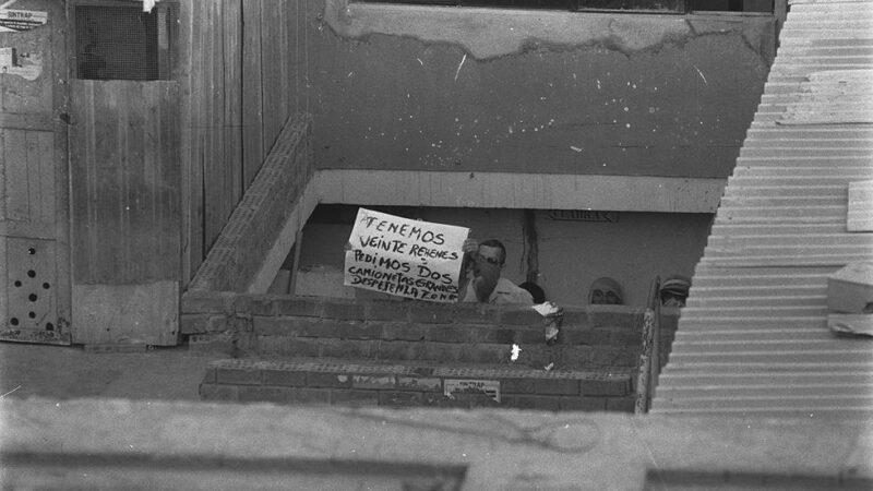 Los amotinados se enteraron de que la televisión estaba transmitiendo en vivo la revuelta y empezaron a mostrar carteles con mensajes, escritos con lápiz labial, exigiendo su libertad. También obligaron a los rehenes a gritar, desde el techo, que se les concediera sus reclamos mientras los amenazaban con un cuchillo en la yugular. Empezaba lo insólito.