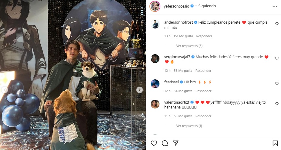 “Hoy estoy cumpliendo 28 años y me hicieron una piñata, como en una fiesta para niños, aunque la verdad si me gustó mucho (…) Me dieron hasta la capa de la legión de reconocimiento a mí y a algunos de mis perros ¡Ellos sabían que SNK es mi anime favorito!”, escribió el joven, como descripción a un carrusel de fotografías con las cuales mostró parte del agasajo.